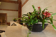 Fountain, Mixed Foliage with Bromeliads Large redesign, Mix of foliage, blooming plants, artificial grasses