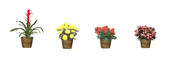 Bromeliads, Mums, Kalanchoe, Azaleas and more.